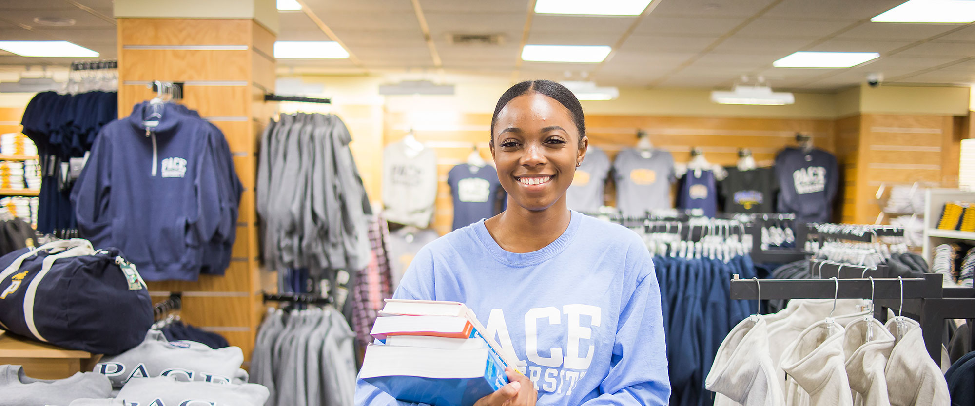 Through Pace’s Setters Book Bundle, full-time, part-time, and non-degree undergraduate students pay one flat rental fee—regardless of the individual cost of textbooks or digital access codes—saving an average of 35–50% compared to retail pricing. Physical books are bundled and ready for pickup at the Pace Spirit Stores, while digital materials are automatically delivered through the Classes online learning platform.